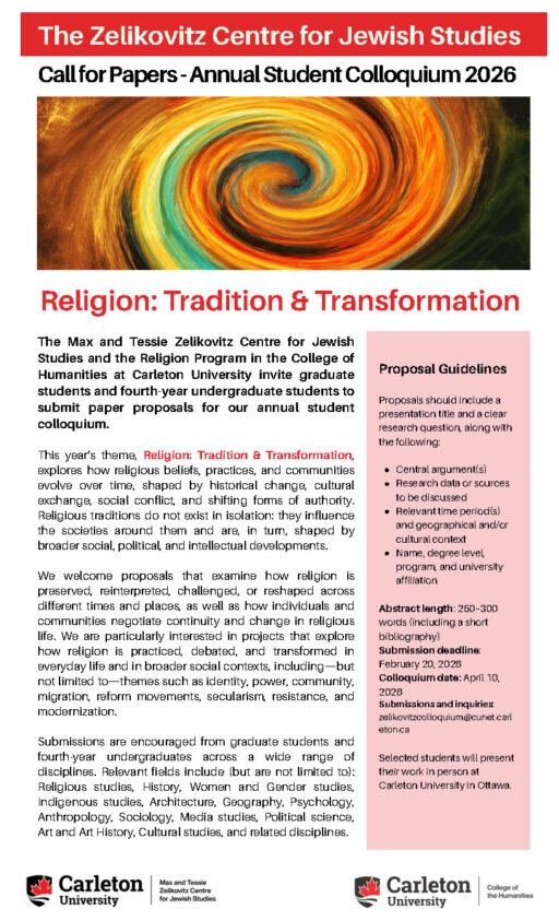 Call for Papers – Annual Zelikovitz Centre for Jewish Studies Student Colloquium 2026