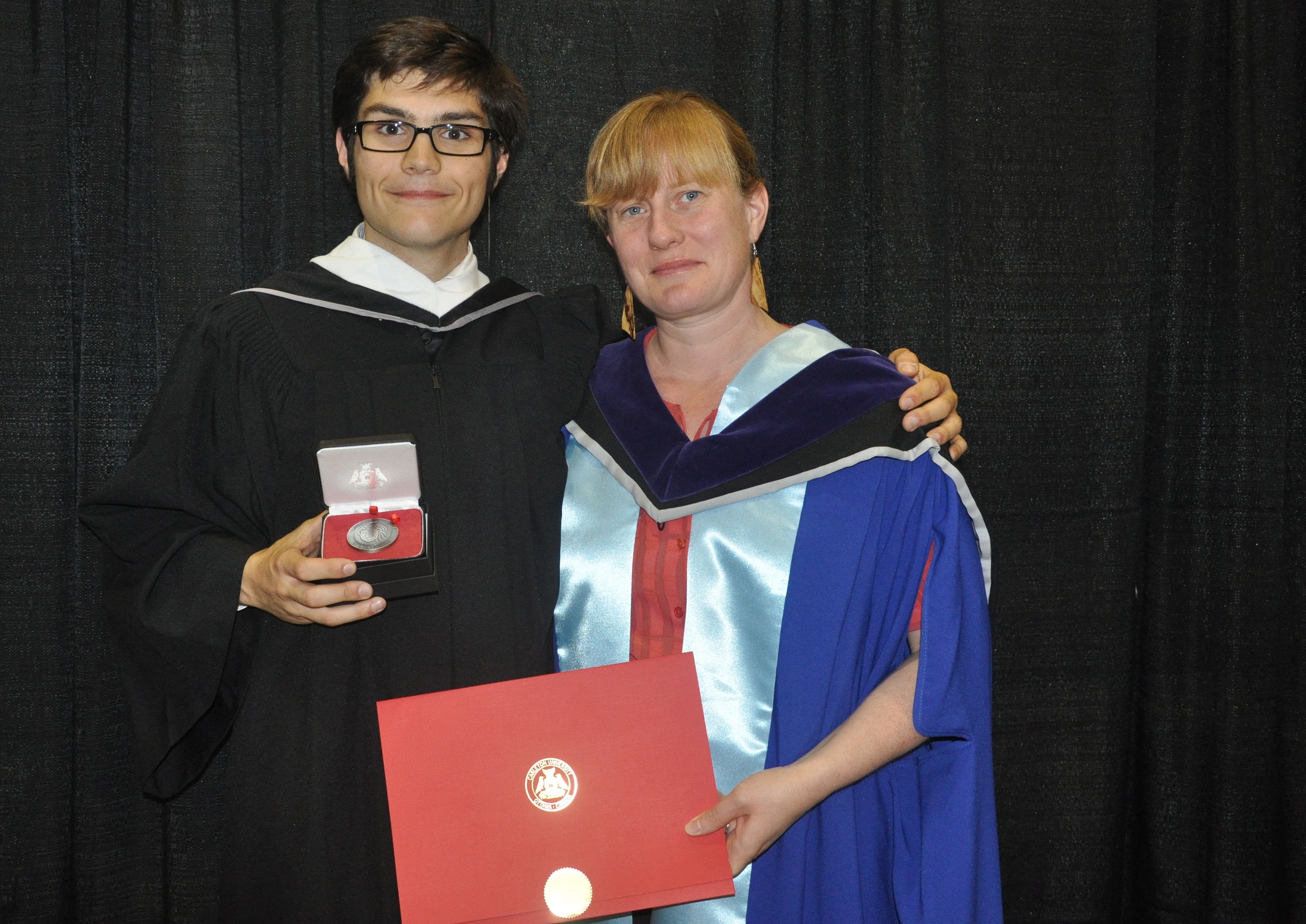 Senate Medal Winner, Jacob Nigro, and 4th year thesis supervisor, Patricia Ballamingie, at the June Convocation 2012