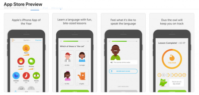 (Screenshot of Duolingo App as advertised on the App Store in March 2017)
