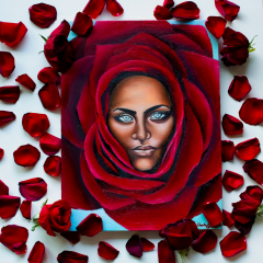 And finally, Dorota Babiakova celebrates femininity in its wide and heterogenous sense and challenges the common negative representation of Muslim women wearing hijabs with a painting portraying a women’s face with a red rose surrounding her and facial expressions that assert her agency.