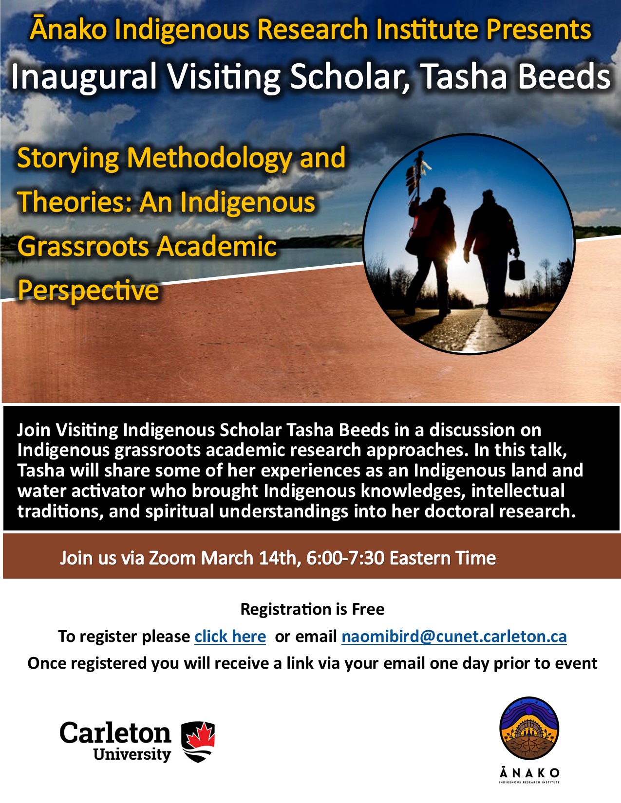 On Monday, March 14, 2022, join Visiting Indigenous Scholar Tasha Beeds in a discussion on Indigenous grassroots academic research approaches. In this talk, Tasha will share some of her experiences as an Indigenous land and water activator who brought Indigenous knowledges, intellectual traditions, and spiritual understandings into her doctoral research.