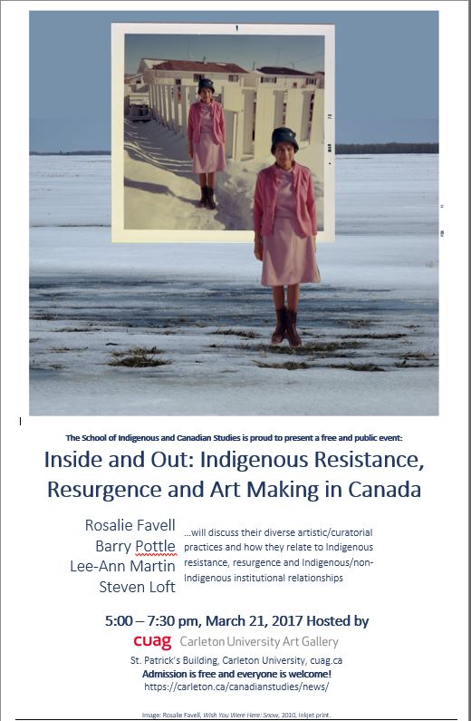 The School of Indigenous and Canadian Studies at Carleton University will be hosting Ottawa-based Indigenous artists and curators for a talk on “Indigenous Resistance, Resurgence and Art Making.”