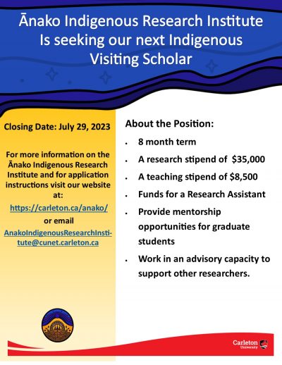 Thank you for your interest in working for the Ānako Indigenous Research Institute at Carleton University. There are no available employment opportunities at this time. We invite you to check back again as this page is updated regularly.