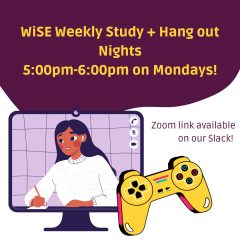 On a more relaxed note, WISE will also be hosting a weekly study and hang out hour where members can join to hang out and meet new people or find an accountability buddy to help get them through the semester.
