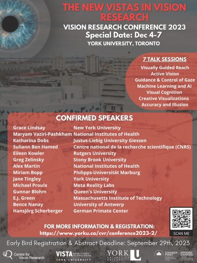 The Centre for Vision Research at York University will be hosting an interdisciplinary vision science conference in December 2023.