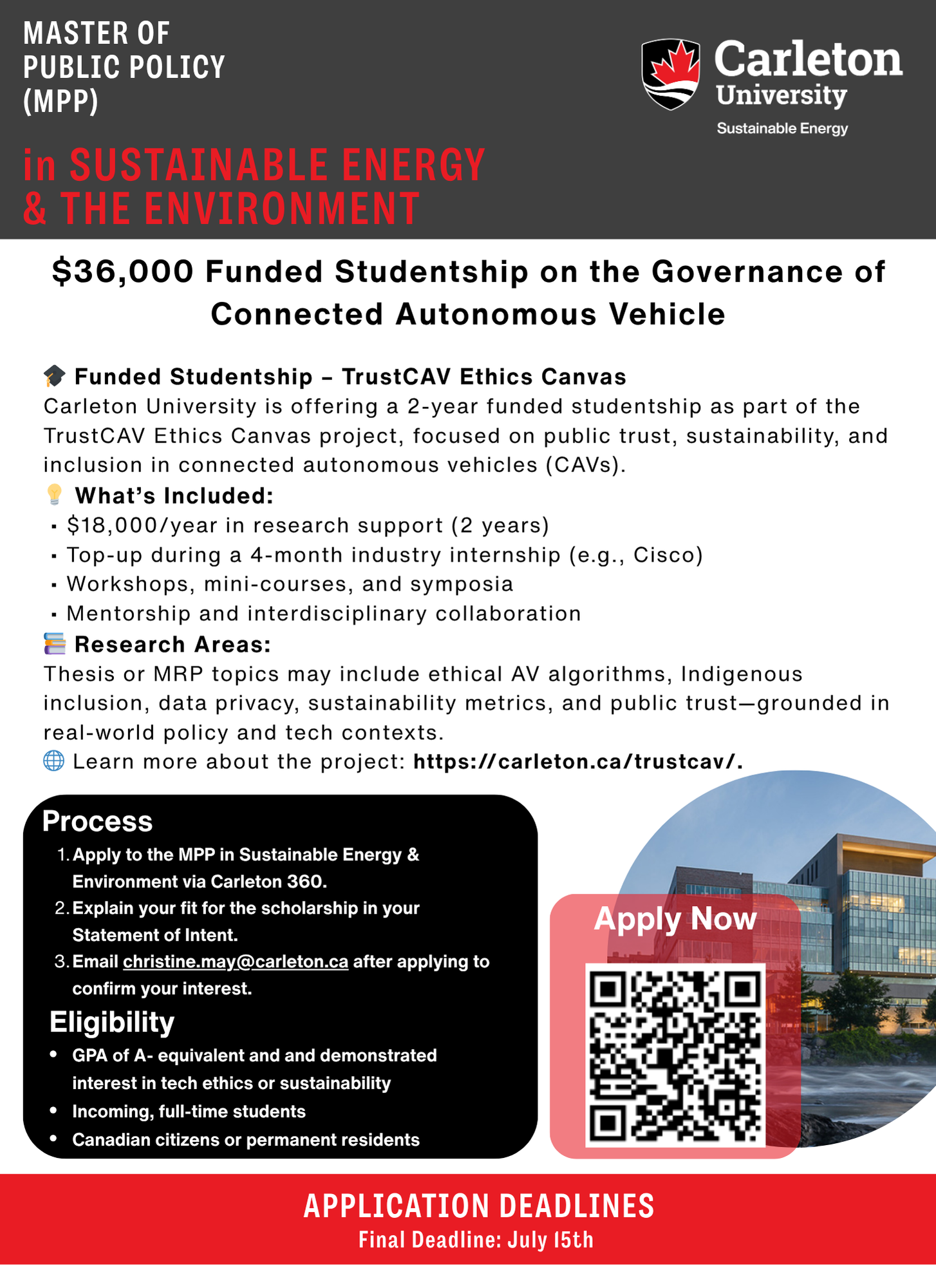 ✔ Apply to the MPP in Sustainable Energy & Environment via Carleton 360