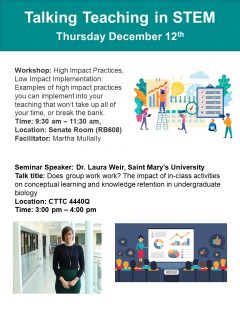 Description: This will be a hands on, active learning workshop for faculty who teach undergraduate science courses. You will leave the workshop with actionable, easy to implement ideas that will improve your teaching and support student learning.