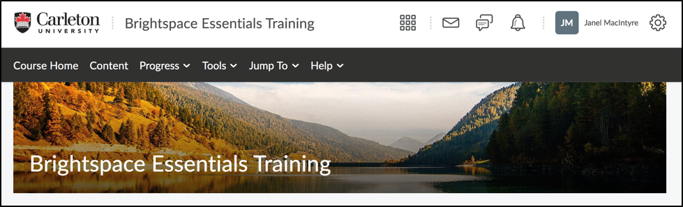 Your chosen banner image will appear as your course banner on your course page and Brightspace homepage.