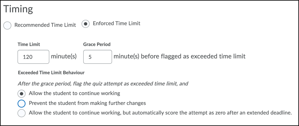 - Select Timer Settings to configure what happens when the time limit expires.