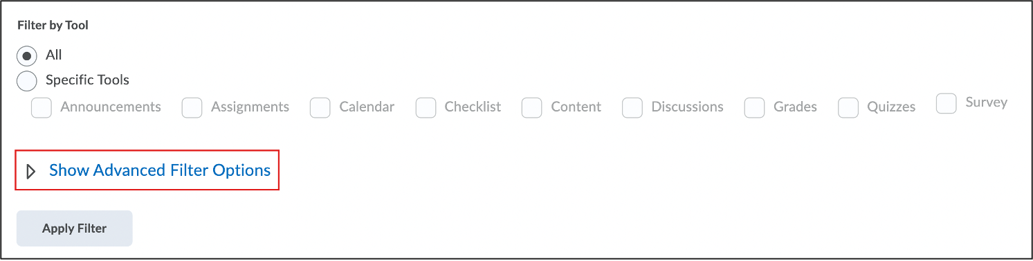 - Click Show Advanced Filter Options. A list of options will appear below.