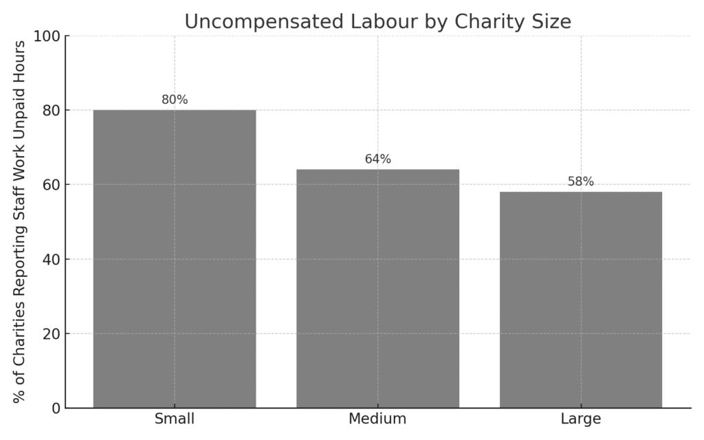 Unpaid labour doesn’t affect all charities equally. Our findings show that smaller organizations are far more likely to rely on it.