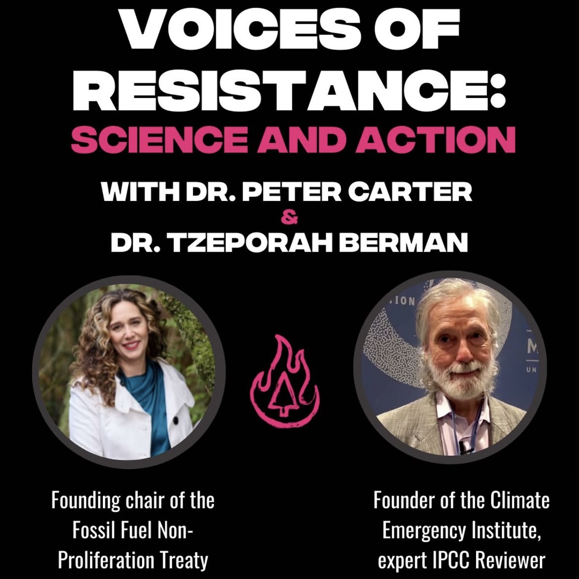 Dr. Peter Carter, expert reviewer for the IPCC will lay out the state of the climate crisis, based on the latest science, while Dr. Tzeporah Berman will take us behind the scenes of her years fighting fossil fuel expansion—and expose the powerful interests most responsible for climate breakdown.