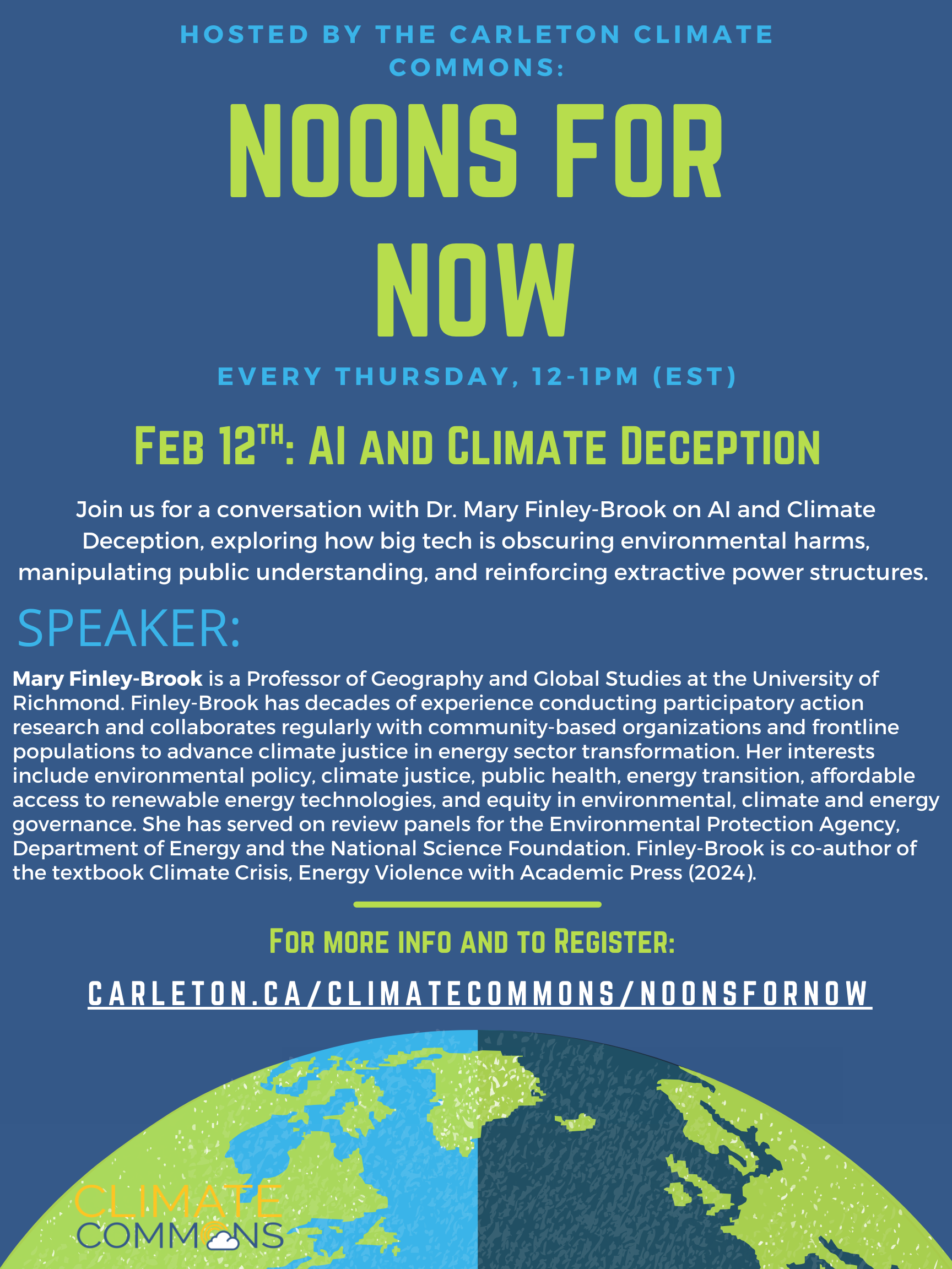Join us for a conversation with Dr. Mary Finley-Brook on AI and Climate Deception, exploring how big tech is obscuring environmental harms, manipulating public understanding, and reinforcing extractive power structures.