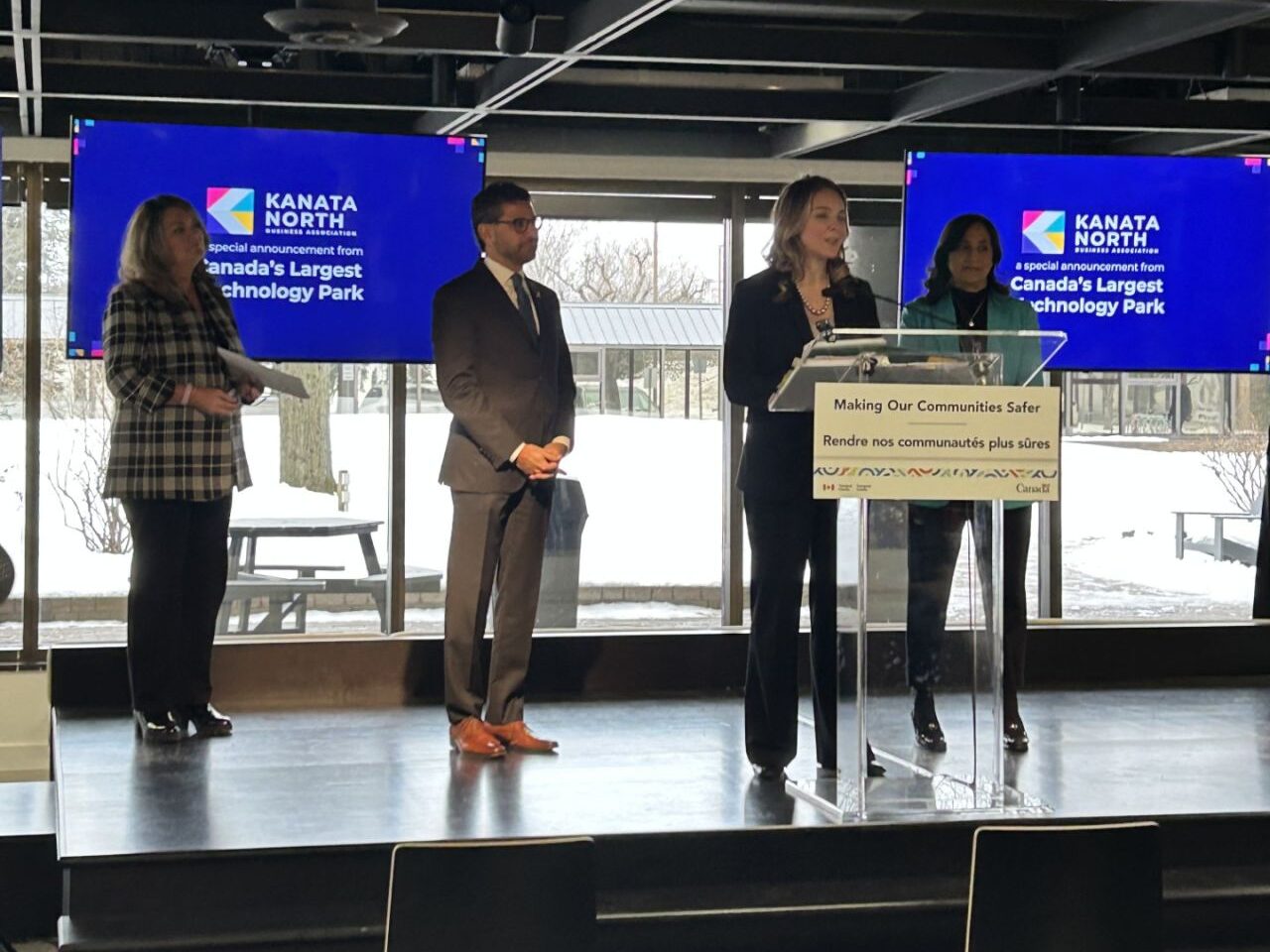 The funding announcement occurred at Kanata’s Hub 350 and was made by Transport Minister Anita Anand and Families Minister Jenna Sudds, joined by Liberal MP Yasir Naqvi and Kelly Daize, Executive Director of the Kanata North Business Association. Carleton University team members Dr. Chris Herdman and Lindsay McCauley were also in attendance.