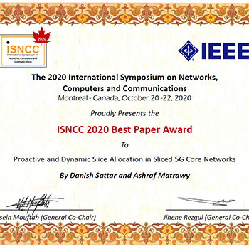 Danish Sattar (PhD) awarded Best Paper @ ISNCC