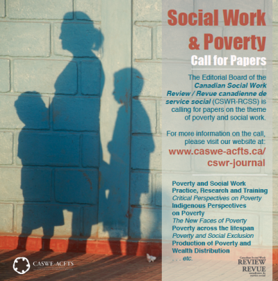 For one of their upcoming issues, the Editorial Committee for the Canadian Social Work Review/ Revue canadienne de service social has launched a call for papers focusing on social work and poverty.