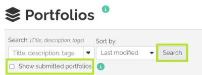 - Click on the checkbox next to ‘Show submitted portfolios’ and then click ‘Search’.