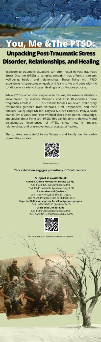 Summer 2022 CURA 5002 students developed a testimony-based pop-up/touring exhibition proposal for the Atlas Institute for Veterans and Families. This project was oriented by Atlas’ goals to: