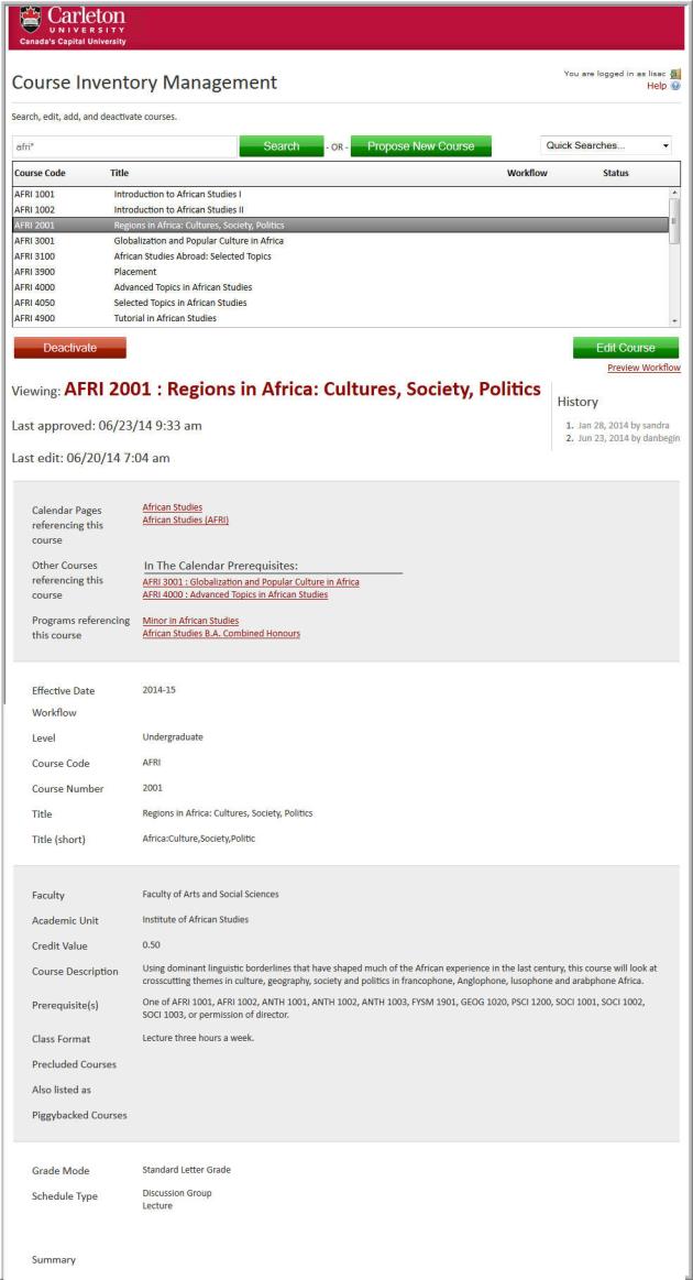 Follow the login steps in section A or login directly to Course Inventory Management by clicking on the following url: https://nextcalendar.carleton.ca/courseadmin.
