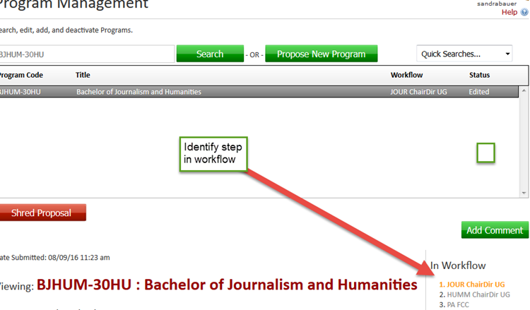 Step 1: Identify what step the item is at in workflow if you do not already know. This can be done in Program Management.