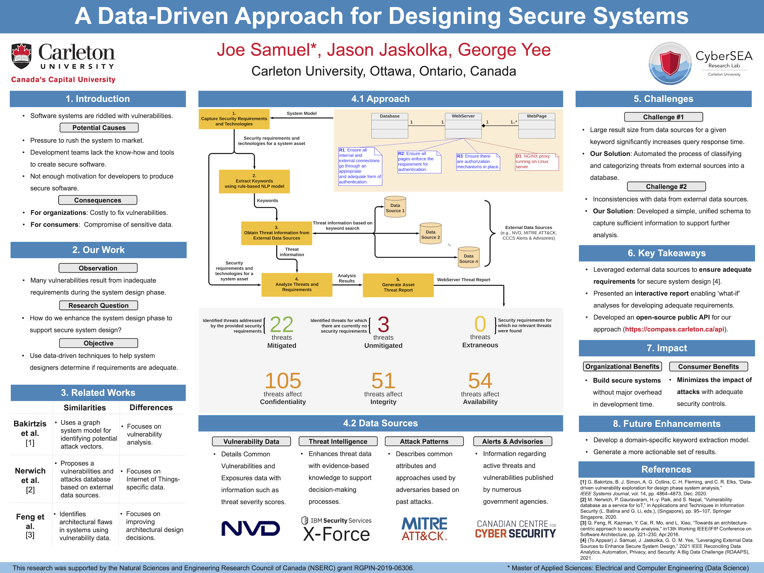 Congratulations to Joe Samuel who won first prize for his poster titled “A Data-Driven Approach for Designing Secure Systems“!