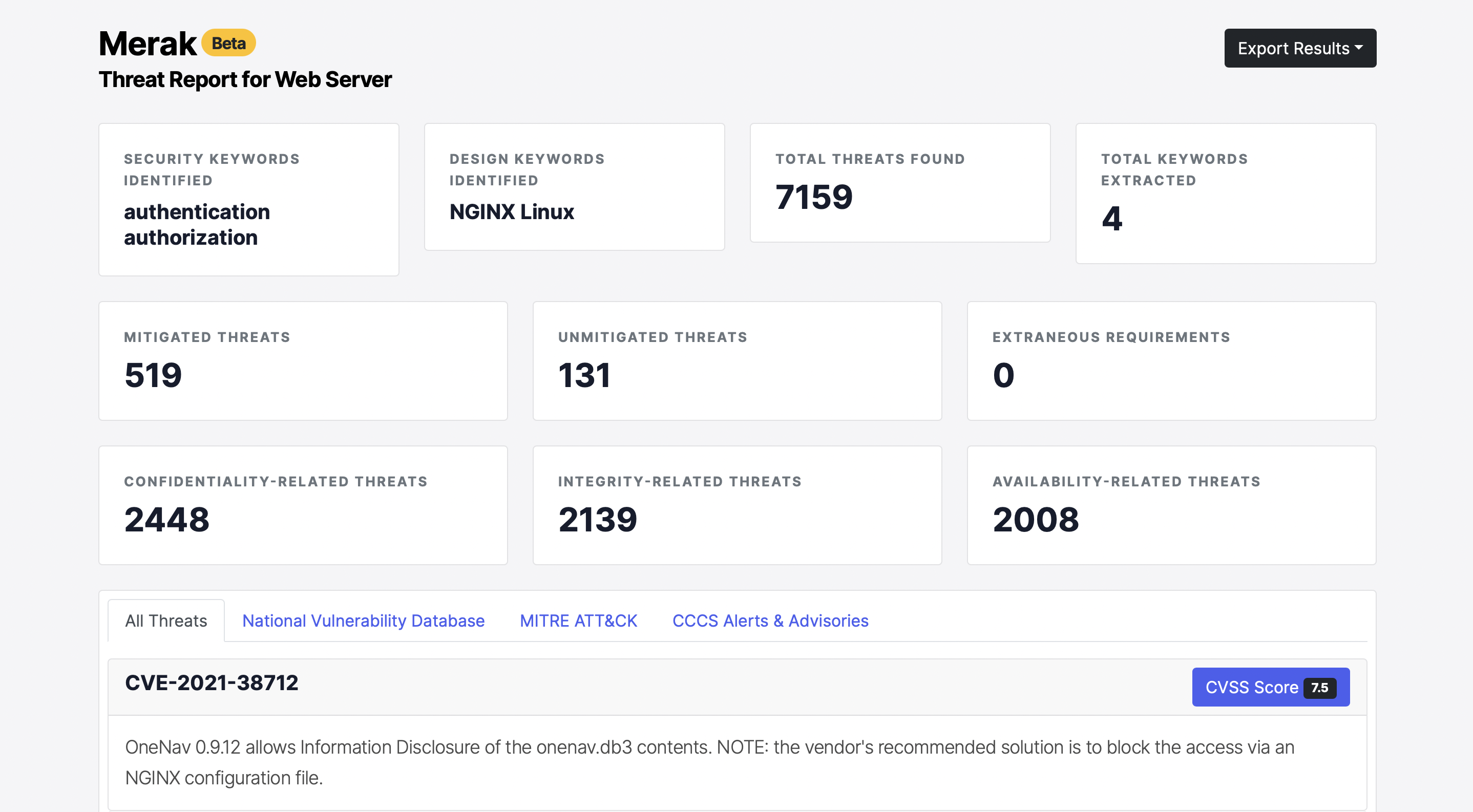 Merak is a web-based threat analysis tool that aims to estimate a software system’s asset threat landscape by leveraging external security data sources such as National Vulnerability Database, MITRE’s ATT&CK, and the Canadian Centre for Cyber Security Alerts and Advisories.