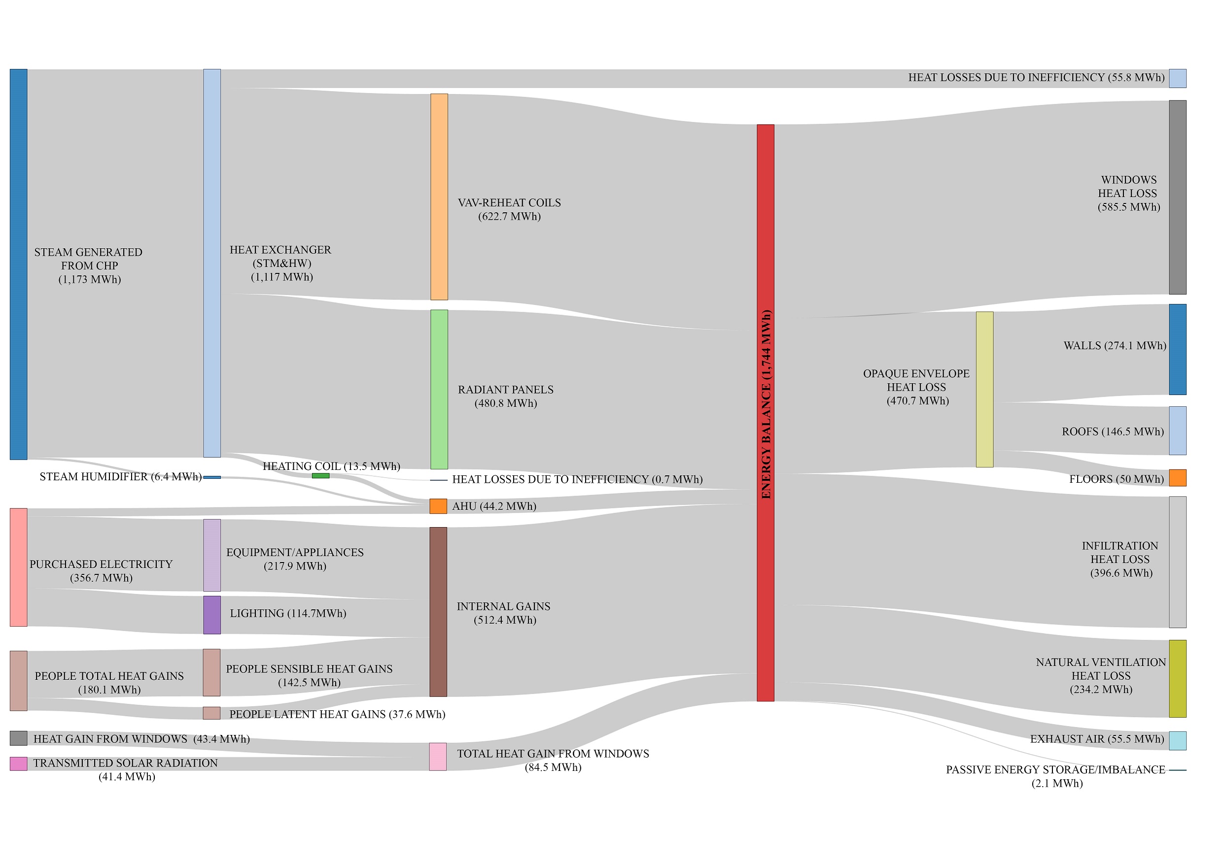 Here’s an example Sankey diagram, showing the energy flow through the Canal Building at Carleton during the heating season.