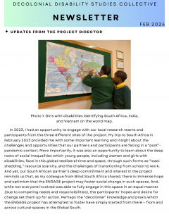We are pleased to share the latest edition of the newsletter on the Engagement of Girls and Young Women with Disabilities in Southern spaces (ENGAGE) project. In this newsletter, we bring you updates on our fieldwork in three countries, including India, Vietnam, and South Africa, partners’ activities, and our upcoming plans.