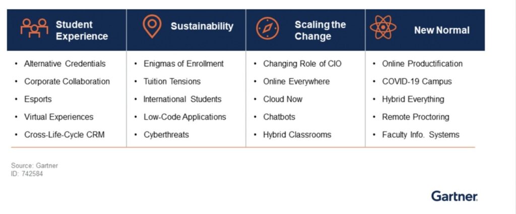 Gartner Inc. (2021). Top technology trends impacting higher education. (Link)