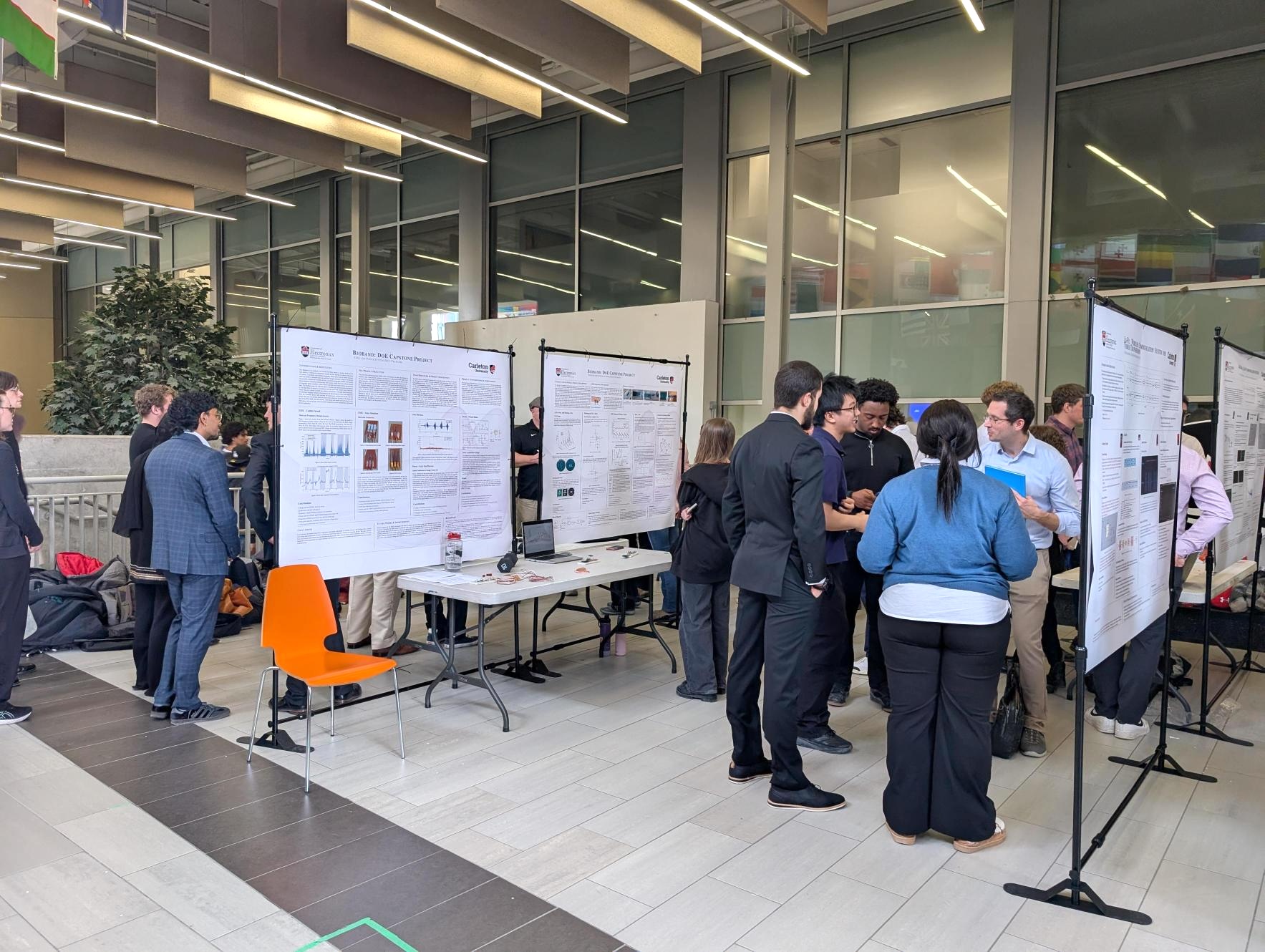 This year, more than 120 electrical engineering, engineering physics and sustainable energy engineering students undertook large-scale 7 challenging Capstone projects in wide variety of topics ranging from photonics, RF, electromagnetics, CAD, power electronic systems, RFICs and analog and digital electronics to computer and machine vision. These projects showcased the work done by our students during their past two academic terms and demonstrated diverse system demonstrations and developments. Here is a sneak peak at some of our projects and our biggest get-together of the year!