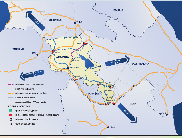 A mutually beneficial solution in the South Caucasus remains elusive. Few countries or international institutions currently possess the will to compel Azerbaijan to negotiate in good faith with Armenia. The European energy sector continues to rely on Azeri gas, often turning a blind eye to Baku’s role in circumventing energy sanctions on Russia. Unlike other regional actors, Azerbaijan is not seeking EU integration and instead prioritizes its relationships with Türkiye and, more recently, Central Asia. The peace corridor proposed by Armenia entitled the “Crossroad of Peace,” along with broader discussions on economic and logistical cooperation between Azerbaijan, Türkiye, Armenia, and Iran, present the most significant opportunity for an economic-driven peace process in the region. In the current bargaining context, Armenia perceives itself as facing significant sacrifices. However, framing the Zangezur corridor within a broader vision of regional economic integration—rather than as a unilateral loss—could help mitigate the perception of total defeat among the Armenian population.