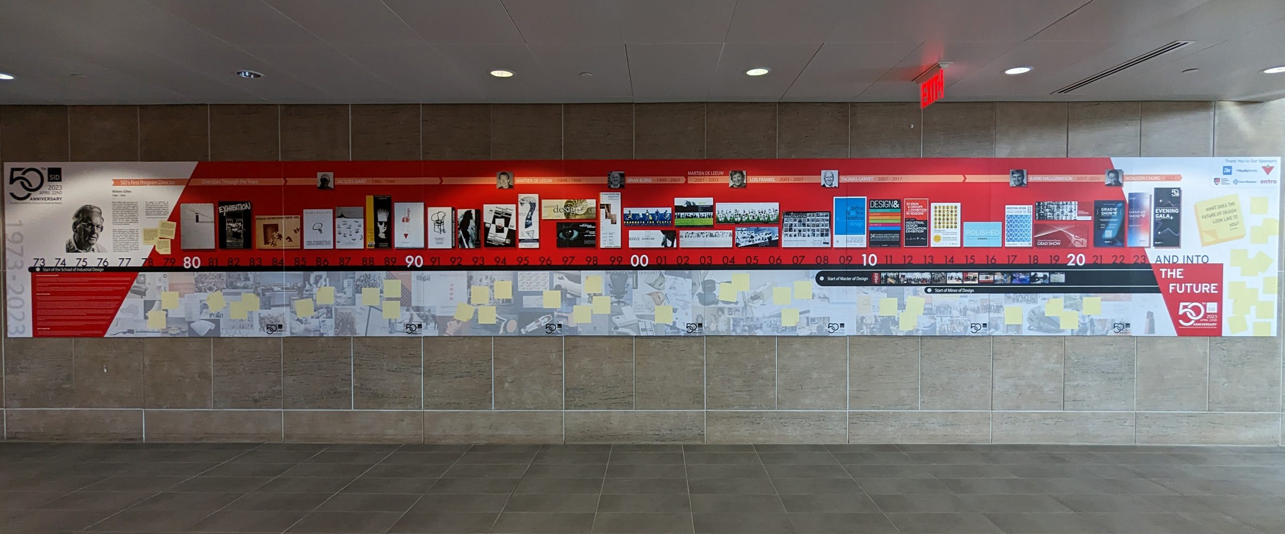The SID raised sponsorship funds from industry to hire many students to facilitate the evening, to run tours of the school and to design various graphic elements, like the massive timeline and a celebratory video.