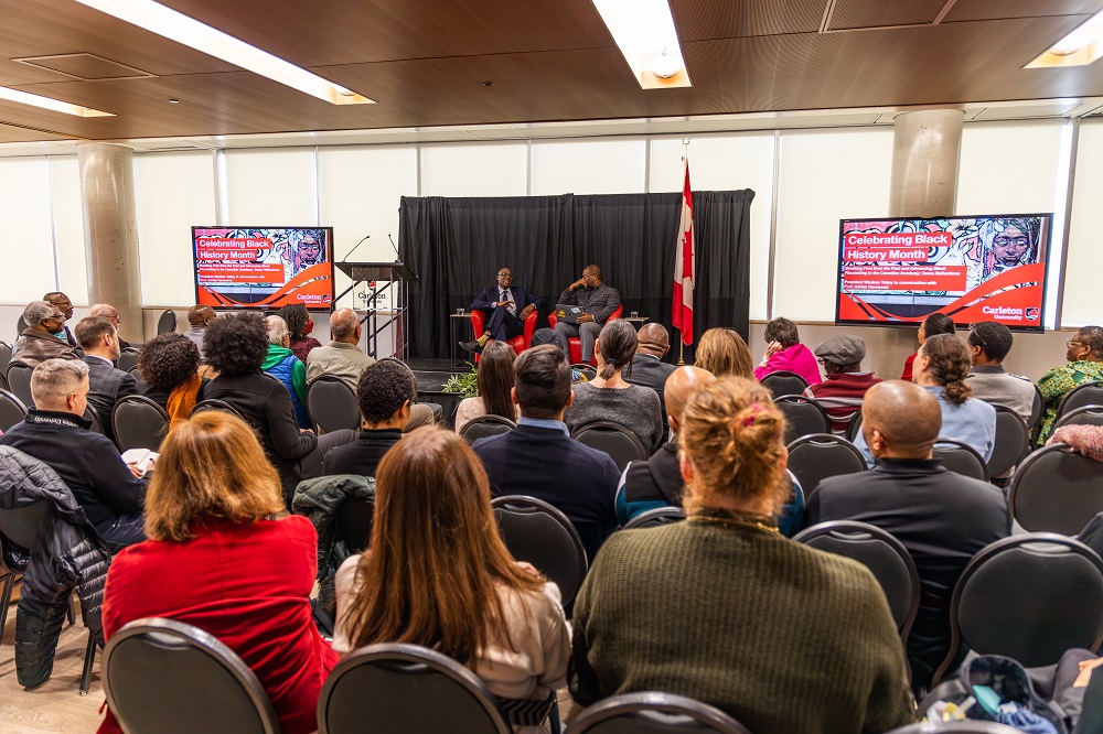 In honour of Black History Month Carleton faculty, staff and students gathered for a thought-provoking discussion on Black flourishing in Canada. The event, Breaking Free from the Past and Advancing Black Flourishing in Canada: Some Reflections, featured an insightful conversation between Carleton President Wisdom Tettey and Prof. Adrian Harewood (Journalism and Communication). Together they explored systemic inequities, institutional accountability and the importance of empowerment within Black communities.