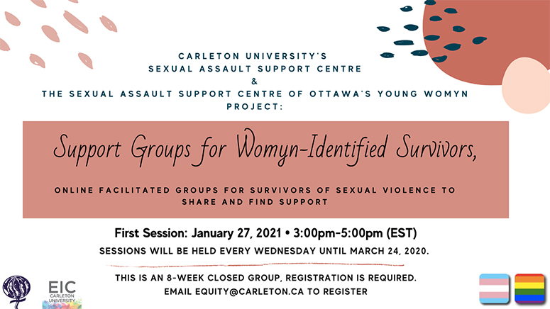 These support groups will be facilitated by the Sexual Assault Support Centre of Ottawa. This is an 8-week program for survivors of sexual violence to share and find support in the community!