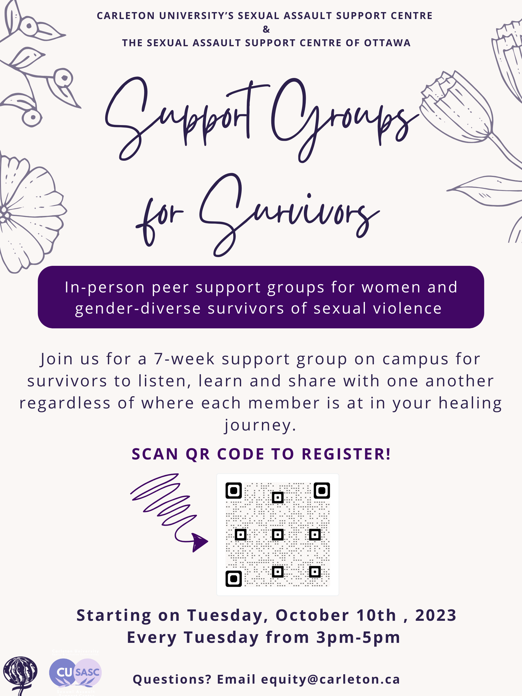 If you require more information, please call 613-520-5622 or email the Carleton University Sexual Assault Support Centre.