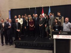 Herman Van Rompuy, the former President of the European Council, visited Carleton University on November 17 to give a speech on “The Future of Europe”. He argued that there is a 15-month window of opportunity to “relaunch European integration”. According to Van Rompuy, three objectives — prosperity, security, and fairness — should serve as guideline for the future development of the European Union. Mr. Van Rompuy also commented on a large range of current issues, including Brexit, the refugee crisis, EU enlargement, and the relationship with Russia. After his speech, Mr. Van Rompuy answered questions from EURUS students and posed for a group picture. The event was organized in cooperation with the Office of the President of Carleton University and the Belgian Embassy.