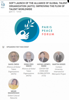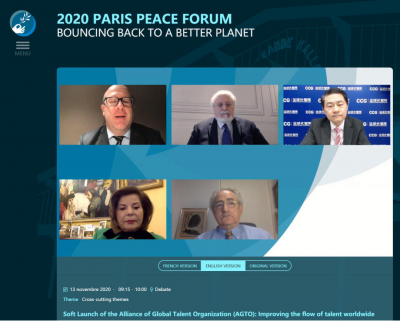 On November 13, 2020, the Alliance of Global Talent Organizations (AGTO) was successfully launched at the third edition of the Paris Peace Forum, accompanied by an expert panel to discuss its main objectives and perspectives.