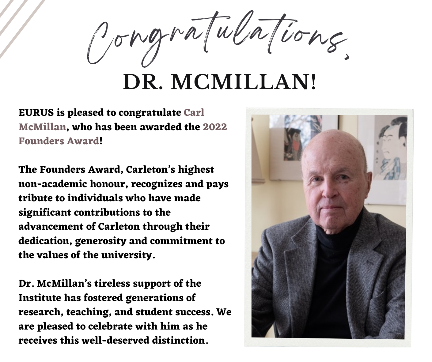 EURUS is pleased to congratulate Carl McMillan, who has been awarded the 2022 Founders Award!
