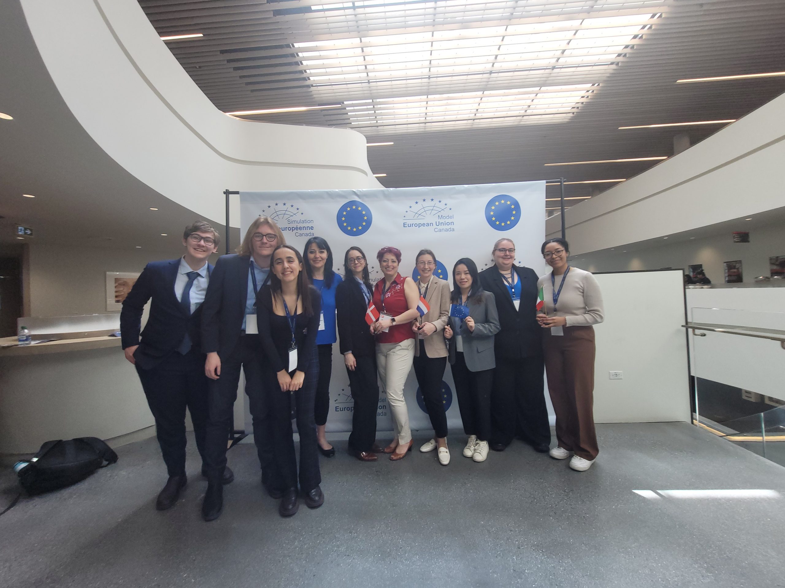 Carleton University hosted the first pan-Canadian Model European Union organized by the EU Delegation to Canada on May 5th to May 7th . Simulating a meeting of the European Council, nearly 100 undergraduate and graduate students from across Canada (picture below) represented European Union member states to discuss the European Union’s Arctic Policy. 10 Carleton students, including 7 undergraduate and graduate students from EURUS, led by Prof. Crina Viju-Miljusevic (picture below), participated in the simulation, representing the countries of Greece, Denmark, Italy, Belgium, Croatia, and the European Commission. The Model European Union participants had the opportunity to meet the EU Ambassador to Canada Dr. Melita Grabrič at the pre-simulation reception at Chateau Laurier (picture below).