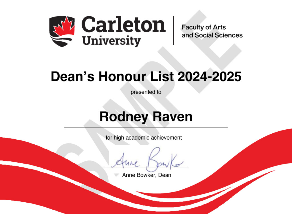 Please fill out the form if you would like a digital certificate emailed to you. A sample certificate is below. The deadline to submit your request is April 1, 2026. Certificates will be sent to your Carleton email address.