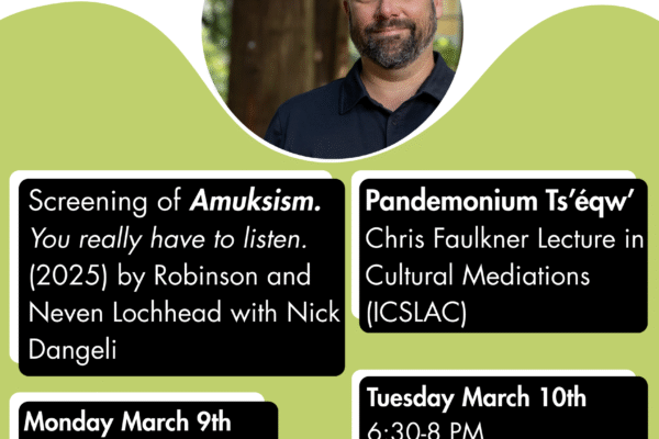 Chris Faulkner Lecture in Cultural Mediations (ICSLAC): pandemonium ts’éqw’ with Professor Dylan Robinson