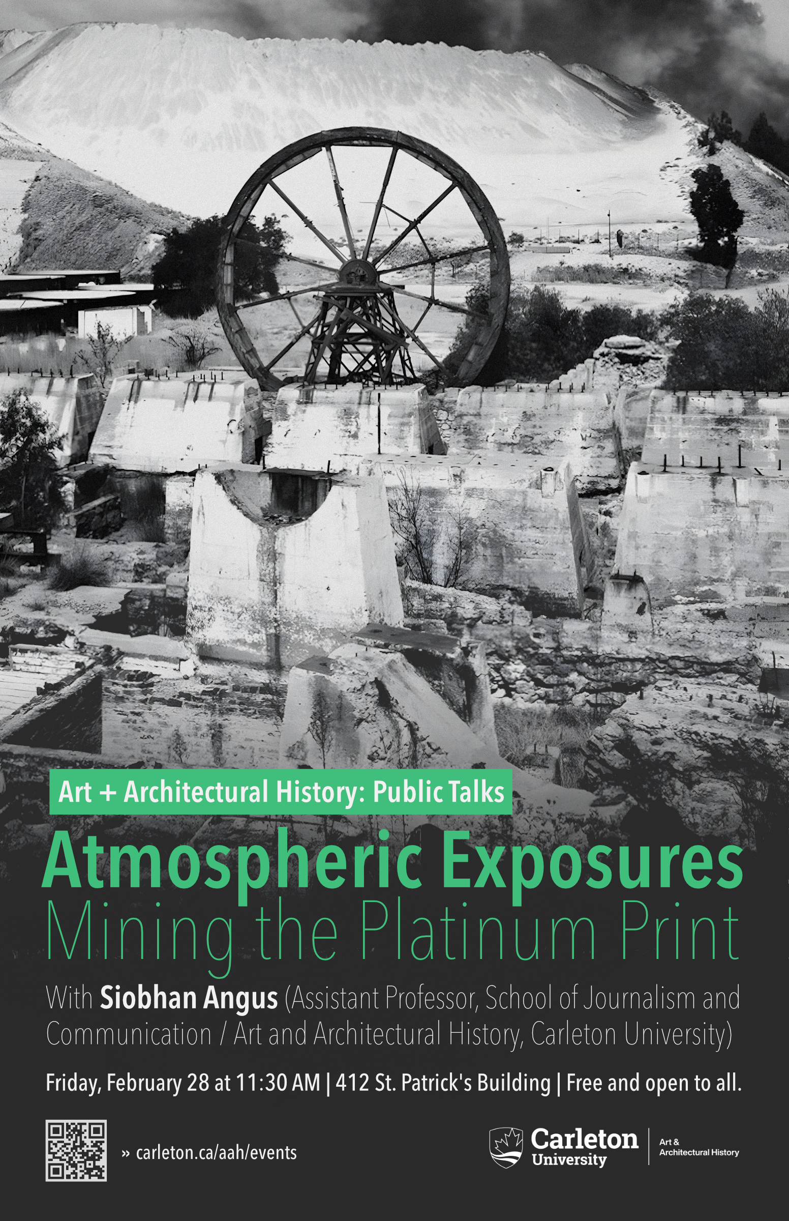 Inspired by platinum prints’ formal and material links to atmosphere, this talk undertakes an atmospheric reading of photographs. The pictorialists championed the atmospheric aesthetics of platinum prints, but platinum and atmosphere also have a material dimension: platinum became an important substitute for silver-based processes, in part due to silver’s vulnerability to atmospheric pollution caused by the burning of fossil fuels. Beginning in Victorian England before moving to Apartheid South Africa, I follow platinum’s supply chains to show how thinking through atmosphere establishes stakes that are both aesthetic and material. Ultimately, the metal’s promise of stable boundaries is undermined by the dust and particles that atmosphere carries between bodies and landscapes.