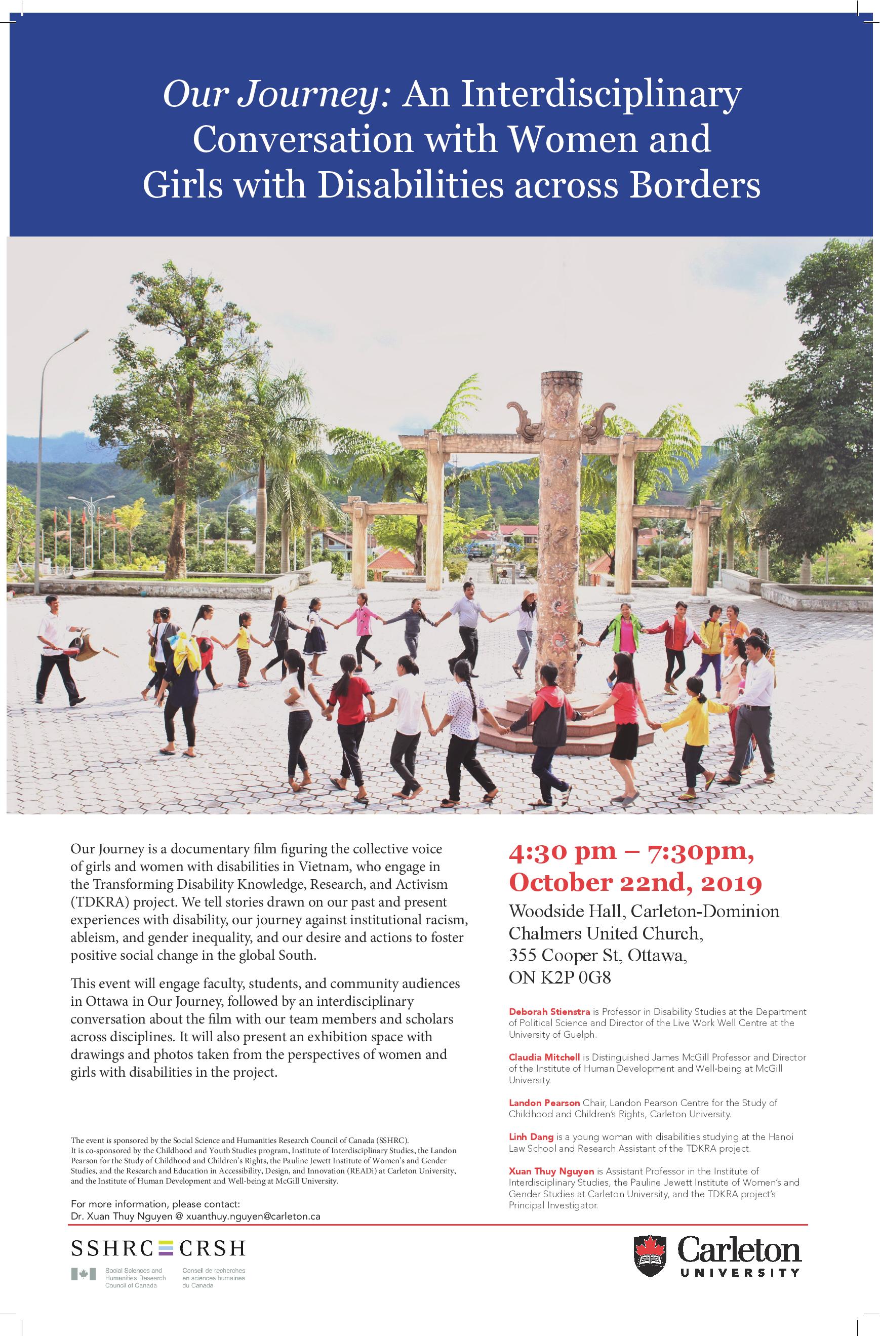 The Transforming Knowledge, Research and Activism (TDKRA) invites you to join us for our Film Screening event, entitled “Our Journey: An Interdisciplinary Conversation with Women and Girls with Disabilities across Borders”. Our Journey is a documentary film figuring the collective voice of girls and women with disabilities in Vietnam, who engage in the TDKRA project from 2017-2019. We tell stories drawn on our past and present experiences with disability, our journey against institutional racism, ableism, gender inequality, and our desire and actions to foster positive social change in the global South.