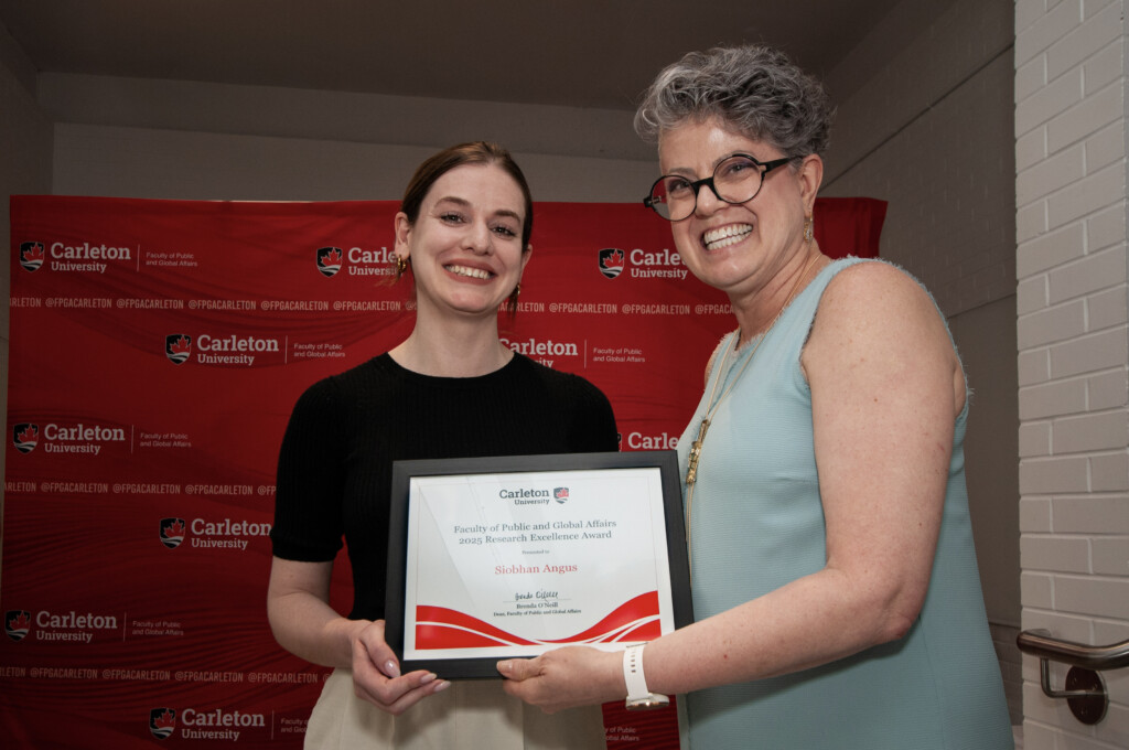 FPGA recently recognized two outstanding researchers, Political Science Professor Jonathan Malloy and Communication Professor Siobhan Angus, with Research Excellence Awards at a celebration on May 8, 2025.