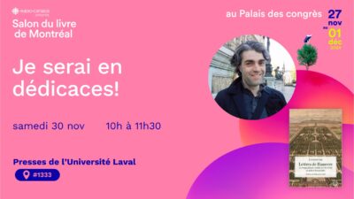 Prof. Sébastien Côté présentera Lettres de Hanovre. Correspondance inédite (1710-1716) et autres documents (PUL/Hermann), son plus récent ouvrage, au Salon du Livre de Montréal.