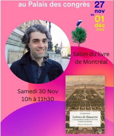 Prof. Sébastien Côté présentera Lettres de Hanovre. Correspondance inédite (1710-1716) et autres documents (PUL/Hermann), son plus récent ouvrage, au Salon du Livre de Montréal.