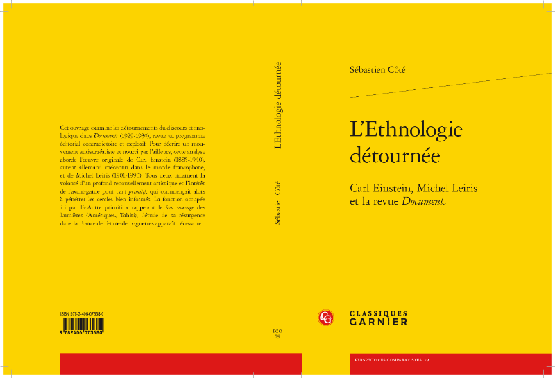 L’ethnologie détournée: Carl Einstein, Michel Leiris et la revue Documents. Paris: Classiques Garnier (series “Perspectives comparatistes: avant-gardes et modernités”), 2018, 304 p.