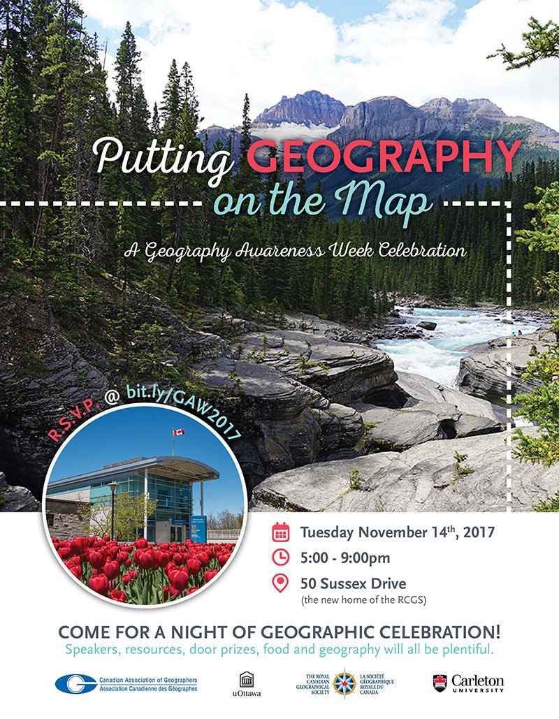 For more than 25 years, the third week of November is celebrated as Geography Awareness Week (GAW), a week-long celebration to bring attention to all aspects of Geography. The Department of Geography and Environmental Studies at Carleton University participated in several ways to GAW this year.