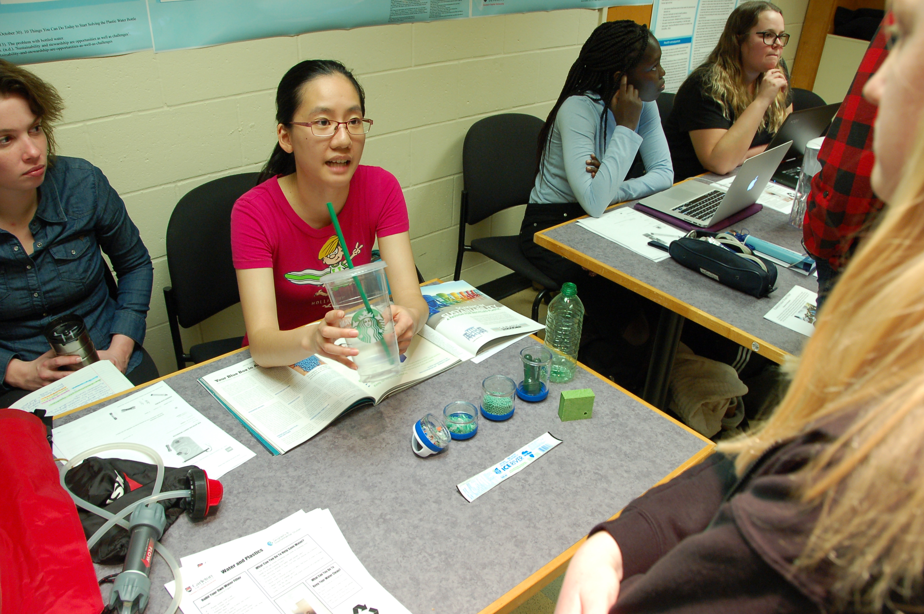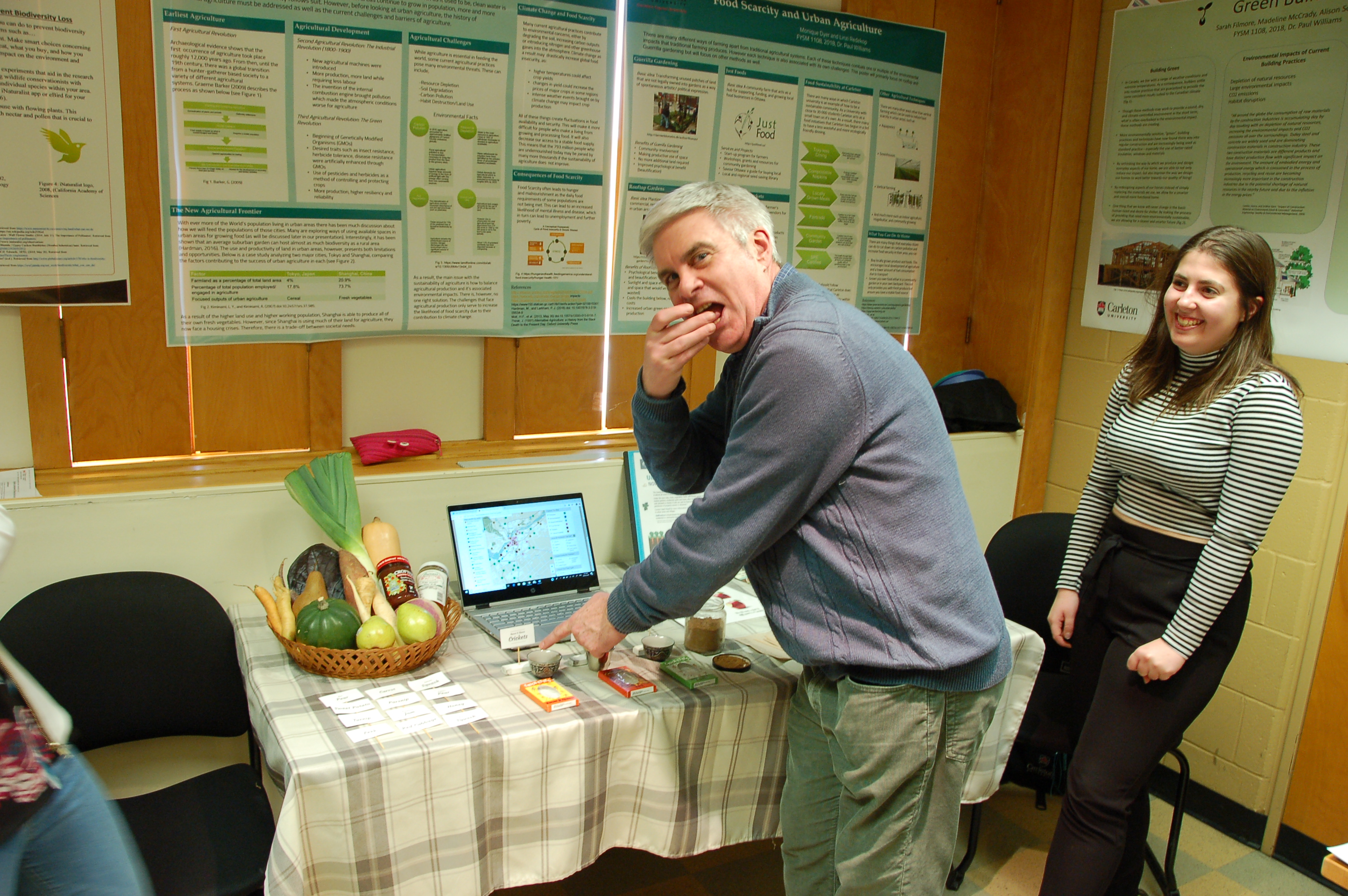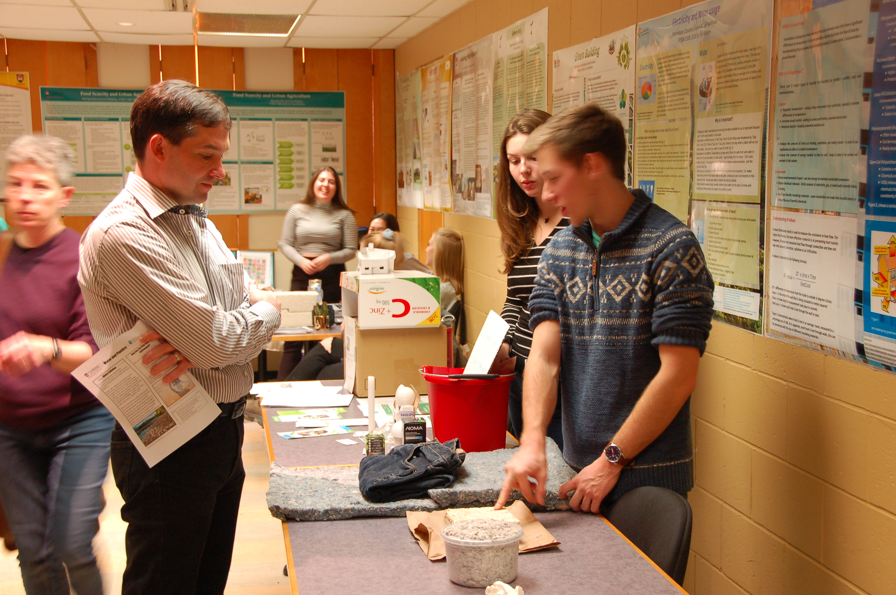 Instructor Paul Williams invited grade 7 & 8 students from a local high school into Carleton today to participate in an eco-workshop put on by his Sustainable Environments FYSM (first year seminar) class. The students in Sustainable Environments produced posters and demonstrations for the grade 7 & 8 students.