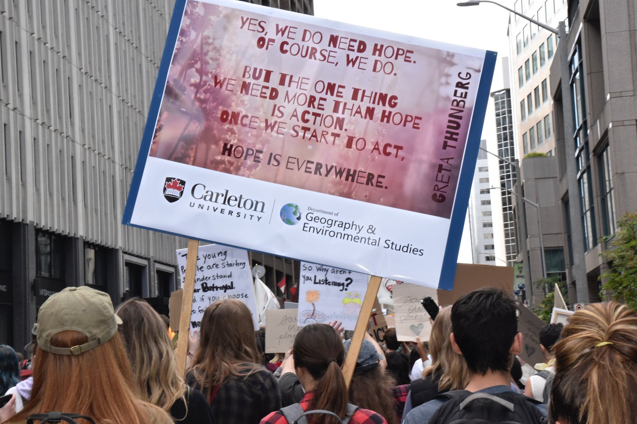 On Friday, September 27, faculty, staff and students in the Department of Geography and Environmental Studies joined millions of people worldwide in the Global Climate Strike to demand that the climate crisis be acted on as an emergency.